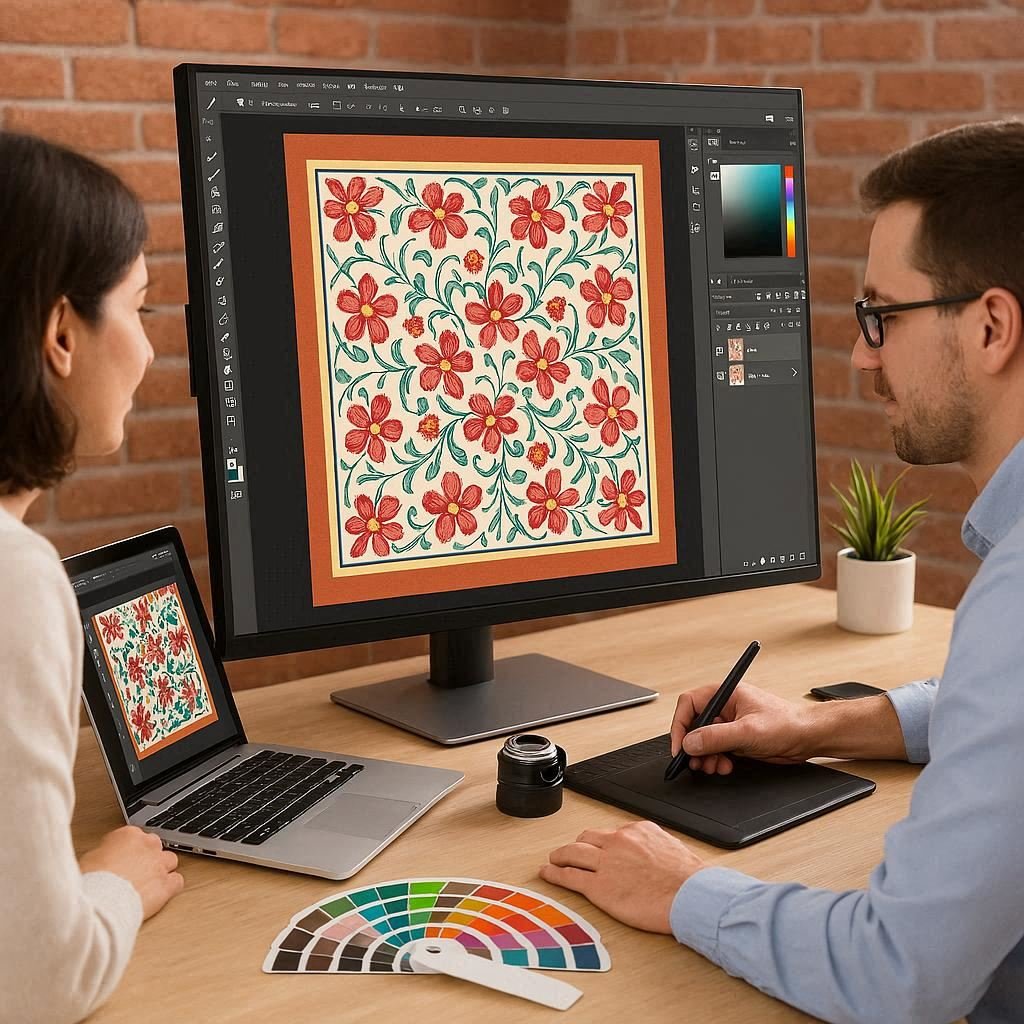 We can transform any hand-drawn or digital design, photos into the most beautiful printed silk scarf.