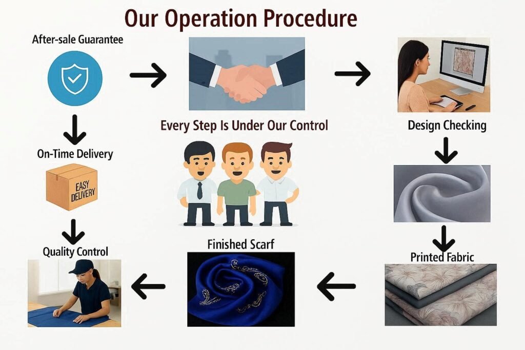 Our print-on-demand service delivers edge-to-edge printing with bright, fade-resistant colors, whether you’re ordering a single scarf with your logo or bulk orders for business or gifting. We transform your ideas into wearable art—explore our bespoke silk scarf solutions today.